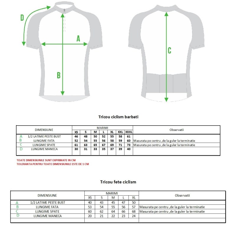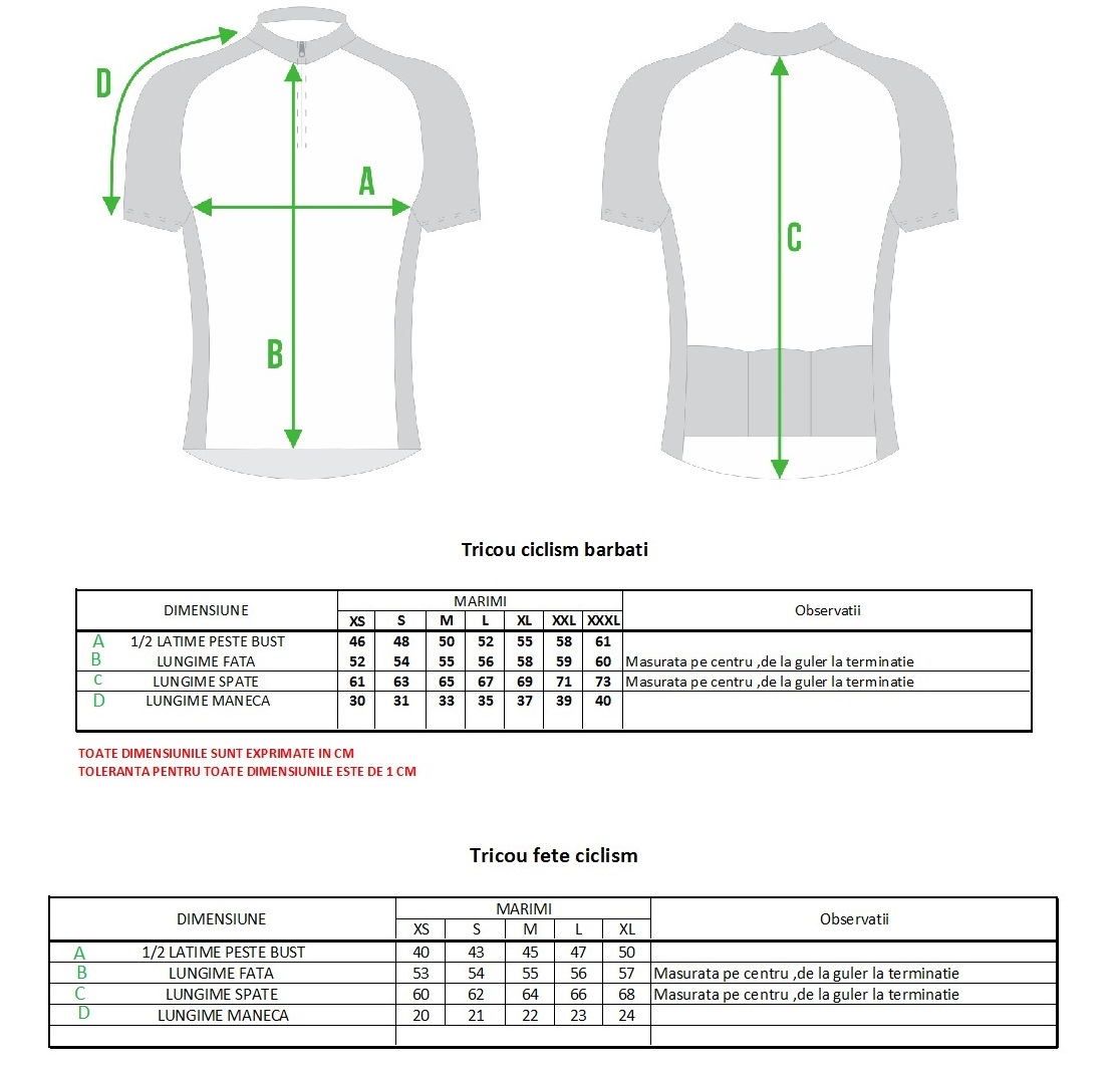 tricouri masurare si dimensiuni